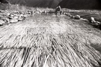 / 藁,石,人,山,植物,川,岩石,繊維,帽子,鉄塔,河畔植生