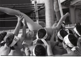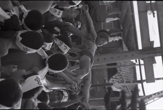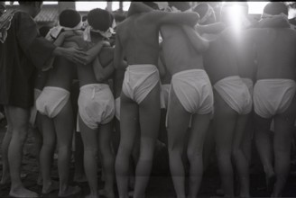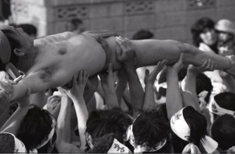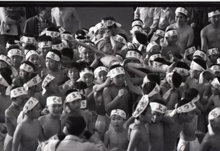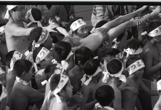 / 裸,褌,はちまき,人,胴上げ,ブロック壁,ふんどし,祭り,子供,帽子