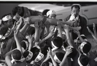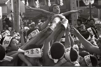 / 人,子供,裸,祭り,ふんどし,はちまき,法被,道路,カメラ,胴上げ