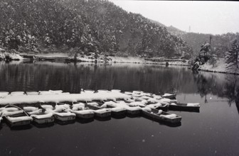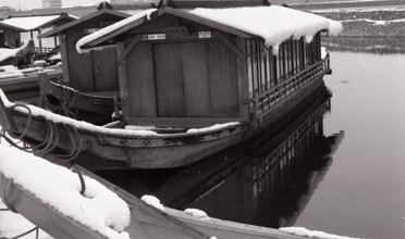 舟止め場 / 船,屋形船,船着き場,車,雪,水,川