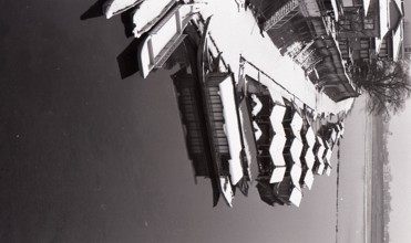 雪の船だまり / 川,雪,船,建物,木,冬