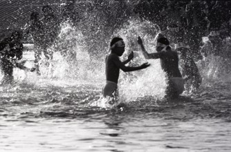 / 人,子供,裸,祭り,ふんどし,はちまき,水しぶき,川