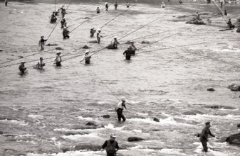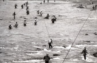 鮎釣り解禁日 / 釣り,人,帽子,笠,石,竹竿,釣り竿,鮎釣り,網,川,岩石