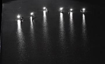 鵜飼い総がらみ / 鵜飼い,船,人,鵜,川