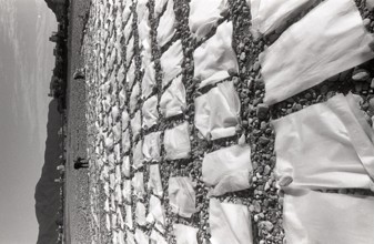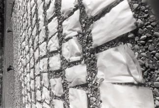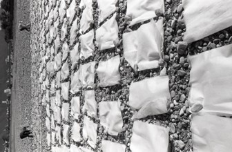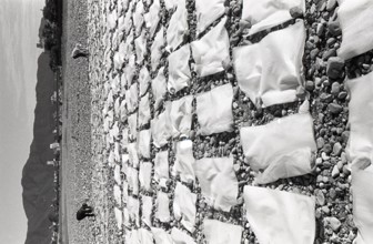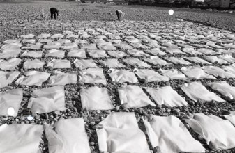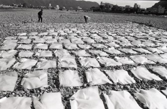 油紙天日干し / 人,布,山,建物,河原,岩石,橋,植物,木