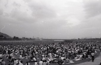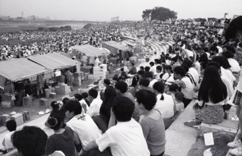 / 人,屋台,橋,建物,河川敷,植物,テント,木,河畔植生,子供