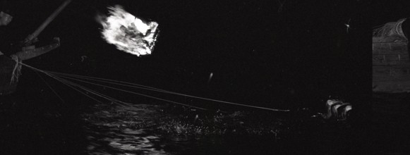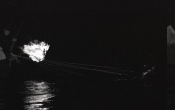 / 人,鵜,鵜飼い漁,かがり火,船,川