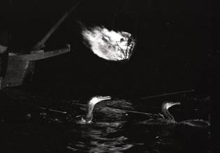 人鵜共演 / 鵜飼い漁,かがり火,船,鵜,人,川
