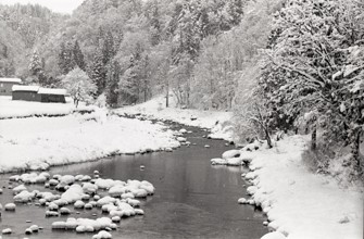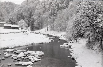 雪化粧 / 雪,川,岩石,河畔植生,建物