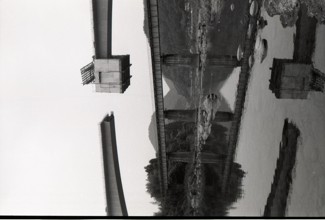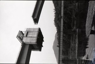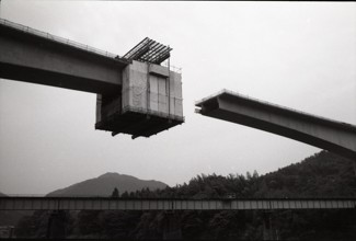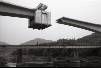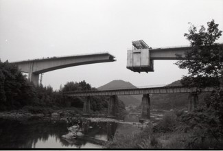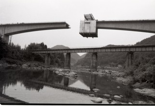 ハイウエイ時代の到来 / 橋,工事,道路,河畔植生,水面,石,山,川,岩石,植物,長良川鉄道