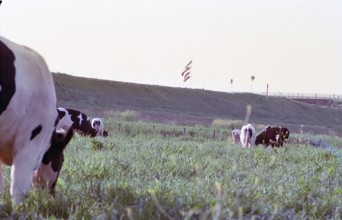 放牧 / 牛,鯉のぼり,植物,橋,菜の花,標識