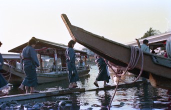 / 人,船,着物,建物,植物,はちまき,木,和服,車,縄,川