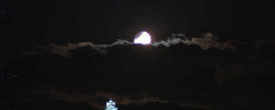 岐阜城と月食 / 月,雲,夜,城,空,岐阜城