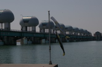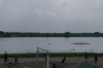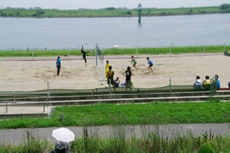 / 人,川,傘,ボール,バレー,ネット,植物,河畔植生,木,帽子,眼鏡,サングラス,花,堤防,鉄塔