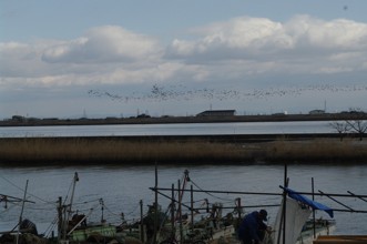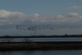 / 車,植物,船,鳥,建物,鉄塔,電柱,河畔植生,空,川