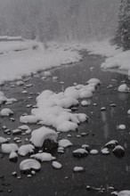 / 雪,冬,河畔植生,植物,川,岩石,森林,木