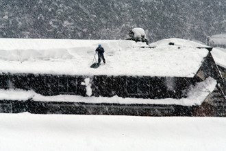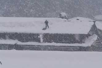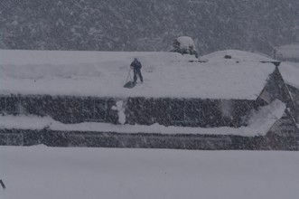 / 雪,冬,植物,岩石,森林,建物,人,雪かき,ヘルメット,木