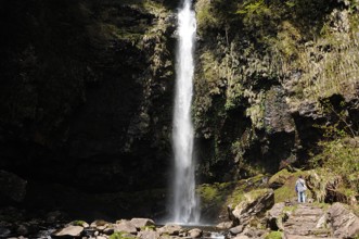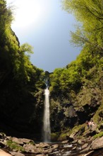 / 滝,水しぶき,川,植物,河畔植生,岩石,森林,人,木