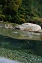 / 川,川底,岩石,魚,植物,河畔植生