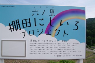 / 農業,田んぼアート,稲作,山,植物,棚田,建物,看板,街灯,岩石,水路,木,森林