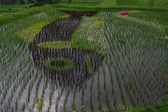 / 農業,田んぼアート,稲作,魚,植物,棚田,傘,竿,木