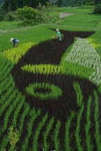 / 農業,田んぼアート,稲作,魚,山,植物,棚田,人,帽子,農家,農作業