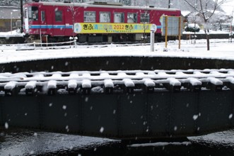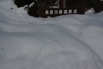 / 線路,電車,長良川鉄道,植物,駅,岩石,道路,雪,冬,建物,山,看板,木