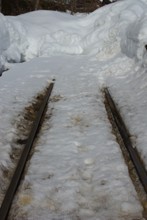 / 線路,電車,長良川鉄道,植物,駅,岩石,山,雪,冬,木