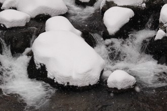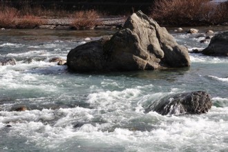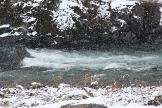 / 川,岩石,植物,河畔植生,雪,水しぶき