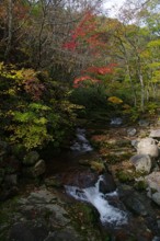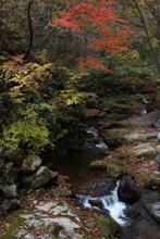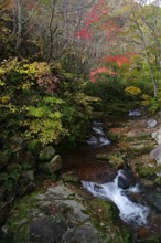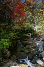 / 森林,山,川,紅葉,河畔植生,植物,岩石,木,落ち葉