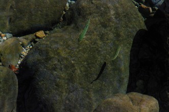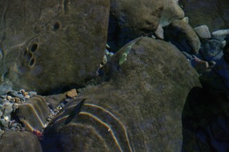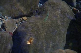 / 川,水中,魚,岩石,落ち葉