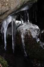 / 川,岩石,雪,氷,つらら,水しぶき