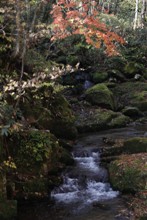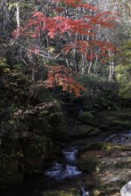/ 川,岩石,植物,河畔植生,紅葉,木,森林
