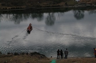 / 川,植物,子供,体操着,体育着,赤白帽,帽子,水筒,鞄,船,エンジン,靴,カメラ,花,人