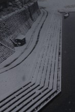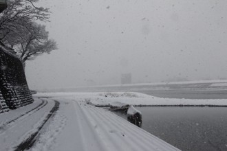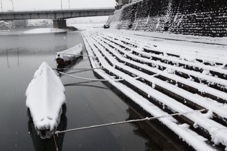 / 船,雪,川,橋,建物,街灯