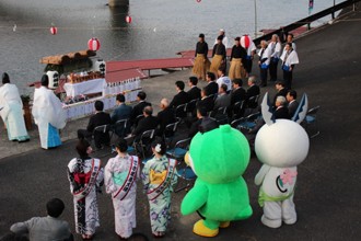 / パイプ椅子,人,眼鏡,和服,鵜匠,はちまき,提灯,川,船,酒,りんご,着ぐるみ,キャラクター,たすき,のぼり