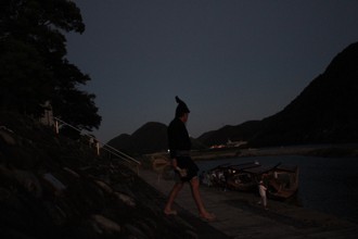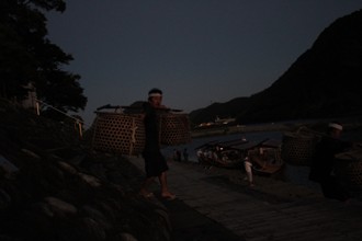 / 川,船,人,法被,はちまき,眼鏡,鵜匠