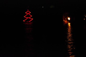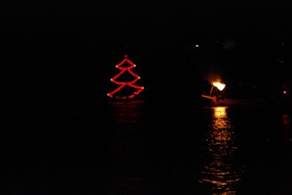 / 川,船,提灯,鳥居
