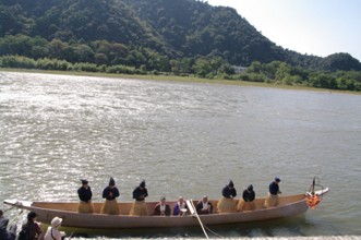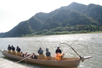 / 川,人,和服,鵜匠,かがり火,眼鏡,数珠,植物,木,河畔植生,建物,船,山,空,帽子,手帳,眼鏡