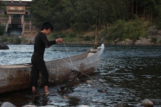 / 川,船,人,はちまき,石灰,カゴ,植物,河畔植生,木