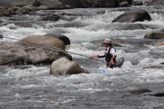 / 人,釣り,岩石,川,帽子,眼鏡,魚,植物