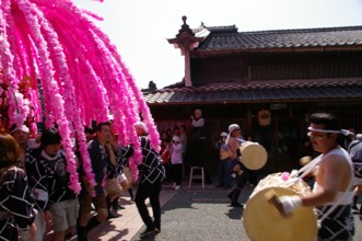 / 人,祭り,法被,神輿,建物,提灯,太鼓,楽器,カメラ
