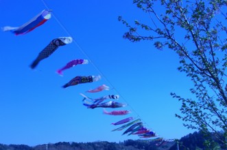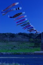 / 空,祭り,鯉のぼり,山,石垣,川