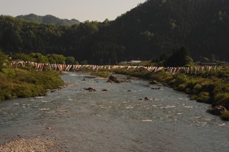 / 空,祭り,鯉のぼり,山,川,岩石,河畔植生