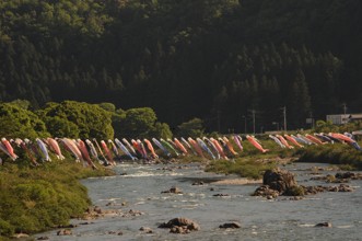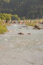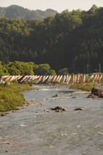 / 祭り,鯉のぼり,山,川,岩石,河畔植生