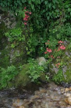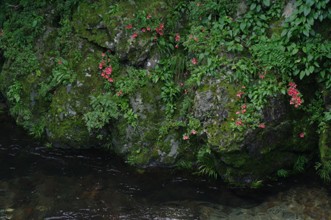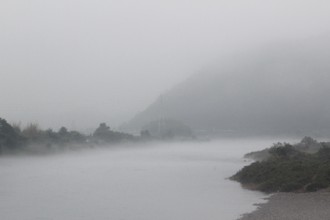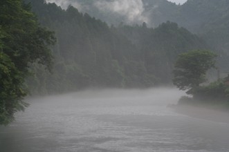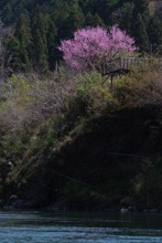 / 空,山,桜,木,川,河原,岩石,電柱,電線,建物