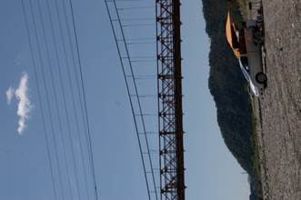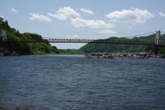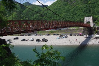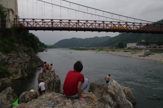 / 空,雲,山,川,河原,岩石,人,橋,建物,街並み,車,テント