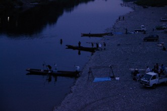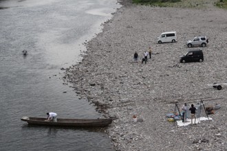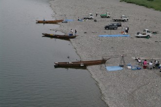 / 人,川,船,車,岩石,河畔植生