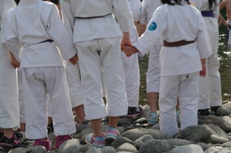 / 人,子供,着物,武道,川,河原,岩石