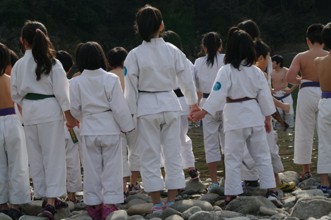 / 人,子供,着物,武道,川,河原,岩石,河畔植生